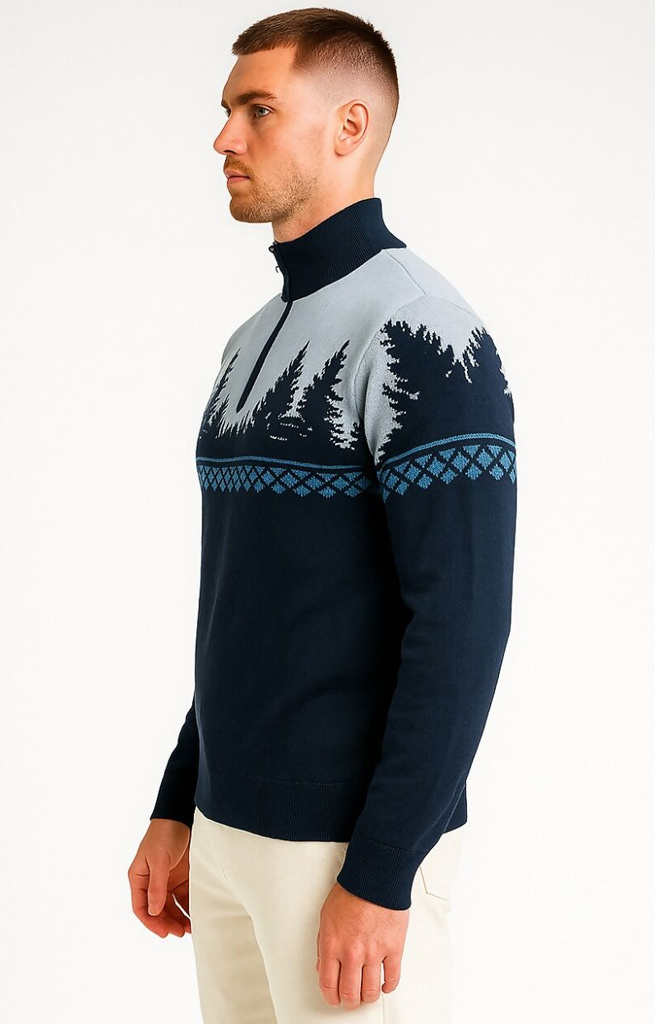 Kersttrui Quarter Zip Donkerblauw - Heren